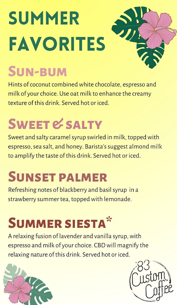 But it doesn't stop there—espresso aficionados will fall in love with the Americano, a velvety concoction served either hot or iced. It's a classic for a reason! For a touch of decadence, indulge in the Caramel Macchiato, where rich caramel meets layers of vanilla syrup and creamy milk. Each drink can be customized with an array of syrups, putting the power of personalization in your hands.